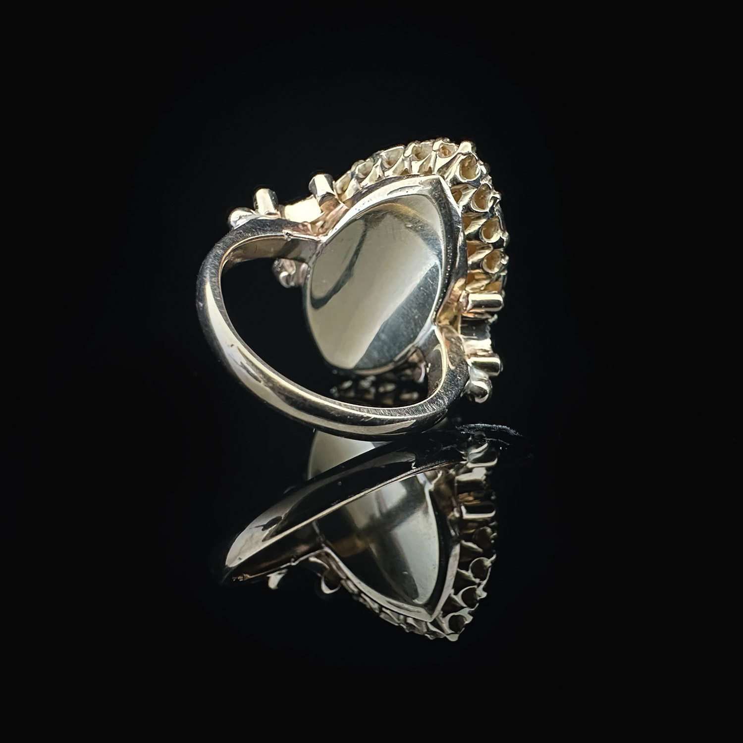 - Solid gold back setting, reflecting light back through the diamond